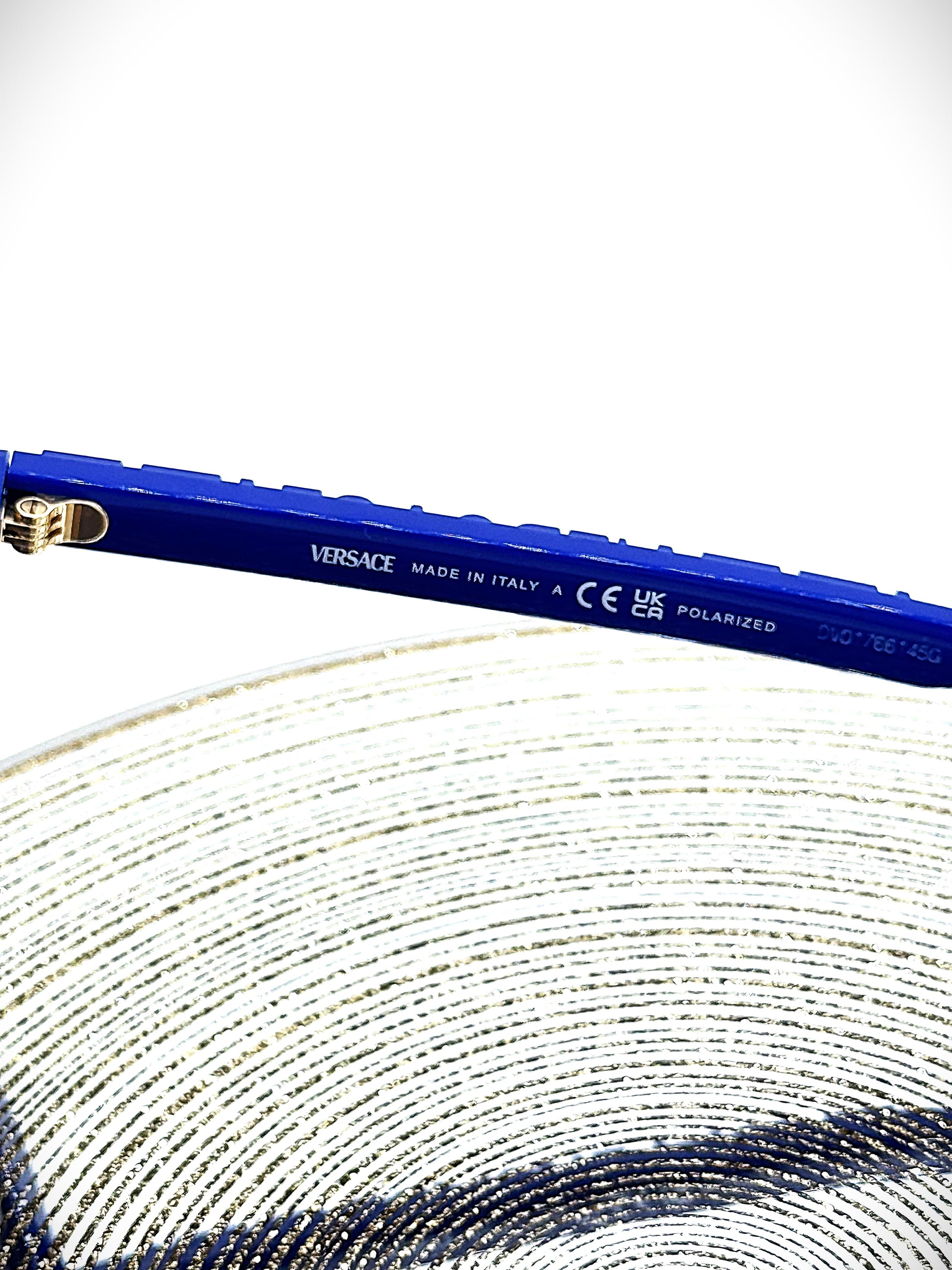 Experience luxury and style with our Versace Polarized Blue Square Frames. These frames not only make a statement, but also provide ultimate protection with polarized lenses. Perfect for any party or event, these frames will elevate your look and keep your eyes shielded from the sun. Get ready to turn heads and make a lasting impression!